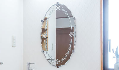 リフォームした洗面台の鏡は、長年使用している奥様のお気に入り。