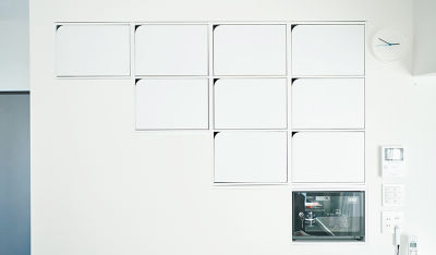 上の階へ続く階段上部の空間を活用し、趣味のグッズを収納。