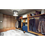 寝室の壁一面に設けたオープンクローゼットで衣類の収納は万全。