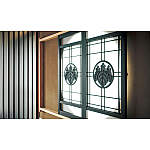 旧家の玄関脇を飾っていた家紋入りの建具は、和室の障子に。円窓からの採光で印象的に浮かび上がります。