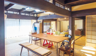 高度経済成長期に新建材を使って増築した部分は減築し、元の古民家らしい状態に修復リフォーム。白アリに侵された縁側を直し、必要最小限の壁で耐震性をアップ。2階の半分を吹き抜けにし、美しい梁を見せたLDKと寝室をつくりました。昔の建具も修理し懐かしい空間に仕上げました。