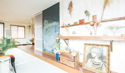 玄関を入ると広がるのは、まるでギャラリーのような土間。ドライフラワーなどを飾り、日々姿を変えています。