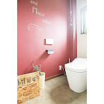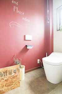 「アラウーノSⅡ」はコンパクトさが奥様のお気に入り。壁の文字はお手製。