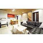 LDKは木目の天井やレンガの壁紙でスタイリッシュな空間に。