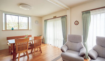 暗かった2部屋の壁をなくし、開放感あるひとつづきのLDKに。窓を開けるとバラの花咲く庭から心地よい風が吹き抜けます。全室に床暖房を完備し、真冬でもぽかぽか。廊下と床のバリアフリー化、寝室への変更を可能にする間仕切りなど、将来への備えも万全。