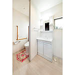 洗面とトイレの間にあった壁を半分撤去して空間をひとつし、動線を短く。