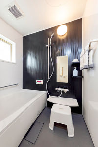 寒くて段差のあった浴室は、全体に断熱材を入れたシステムバスに変更。手すりも設置され、安心して入浴できます。