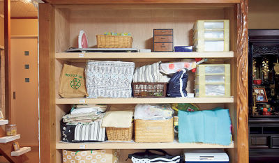 和室の押し入れは、奥半分を洗面台スペースに。前面だけでも収納力は十分。