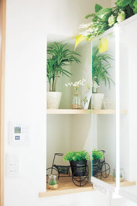 インテリア好きの奥様のために、壁のニッチを利用して小物を置ける飾り棚を設置。