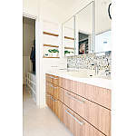 洗面ドレッシングは上質感な雰囲気の「ラシス」を選び、モザイクタイルをプラス。