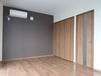 アクセントの壁紙はシックなブラックで落ち着いた印象の広々空間となりました。