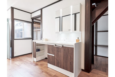 トイレ、洗面スペースへは、LDKと寝室の両方から移動がしやすい動線を確保。利便性にこだわった水廻りは、毎日の暮らしやすさを高めました。