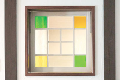 キッチン横には、再利用のカラフルなガラスの小窓。古き良きものを残して、和モダンでおしゃれな雰囲気に。