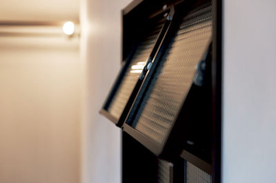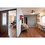 リーディングルームと洋室をつなぐ室内窓。風も光も通し、快適性を高めます。隣室にいる人の気配をお互いが感じられます。