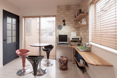 キッチンの隣はカフェ風にコーディネイト。その一角にご主人のパソコンスペース。