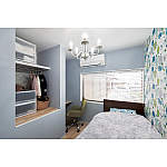 息子さんのデスクは、インテリアカウンターをL字に配して、部屋を広く使えるよう工夫。