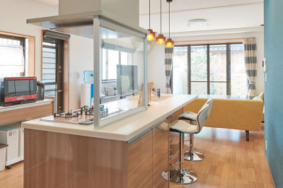 キッチンとリビングが近くなり、作業をしていても家族と会話ができるようになったと、奥様からお喜びの声をいただきました。