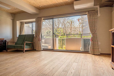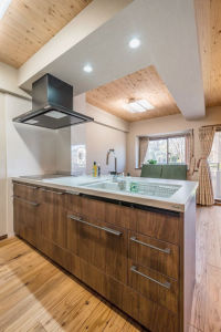 空間の湿度を調節する効果を持っている国産の杉材を選ばれました。リビングは以前より明るくなりました。