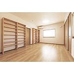息子様のお部屋の壁に設置した本棚。千冊以上の収納が可能。