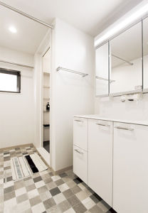 中古マンションを購入されたM様。ご夫婦の在宅ワーク中も快適に暮らせる住まいへとリフォーム。暮らしの中心となるLDKのポイントは、デスクワークにも使えるカウンターを備えた畳コーナー。畳の質感や壁紙の貼り分けが目にも楽しいワークスペースです。畳の下の大容量の収納のおかげでLDKはいつもスッキリ片付きます。ホワイトとネイビーをテーマカラーに、内装をコーディネイトし、キッチンにはネイビーを採用。二間続きだったリビング横の和室は将来、子ども室にできるよう独立した洋室に。現在は、トレーニングルーム、映画やゲームを楽しむ趣味室として活用されています。家全体の収納と動線を見直してキレイと安心をキープでき、家での時間を楽しめる素敵な住まいになりました。