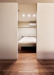 個室はベッドが置ける最小限のスペースで。エアコンの配管も壁面に隠してすっきり。