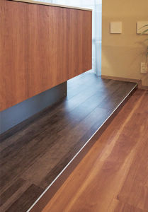 キッチン段差の蹴込み部分にステンレスのパネルを仕込んで美しく。