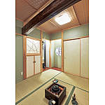 築百年以上の歴史ある母屋につながる厩舎だった土間部分を数寄屋造りに使われる部材などを使用し、床の間や飾り障子を配した本格的なしつらえに。立派な梁や柱など趣ある部分は残し、新しい部材と融合するよう設計しました。さらに茶室に隣接する車庫に裏玄関を設け、母屋へつながる動線を確保。「帰宅して駐車後、外に出ることなく母屋に行けるので荷物が多いときもラクになりました」。お子様が独立され「これからは自分の楽しみも大切にしたい」という奥様の夢が実現しました。