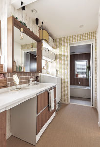 北欧テイストのクロスで大人可愛いインテリアの洗面・トイレ空間。
