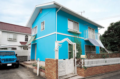外装にもさわやかな明るいブルーをセレクト。住まいの内と外でコーディネイト。