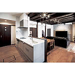 築55年のお祖母様の住まいを受け継ぎ、リフォームしたE様。一番のご要望は暑さ寒さの改善でした。開口部に内窓を、床・壁・天井には断熱材を補填し、床下は土間コンクリート打ちで性能を向上。来客が多いため、和室の続き間と広縁を一体化し大空間LDKを実現。また「LDKに部屋干しスペースがほしい」奥様と「生活感をなくし、かっこよくしたい」ご主人の想いから、広縁に物干しを設置し、リビングからの目隠しに縦格子を配置しました。解体時、趣のある2階の床組が現れたので、現し天井をご提案。天井高も確保できダークブラウンに塗装した天井は印象的で、E様のお気に入り。お孫様が毎週末遊びに来る空間になりました。