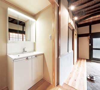 農家住宅だった旧家の佇まいを大切にして玄関の三和土(たたき)の土間・土と竹の天井、薪風呂を残すことに。綿密な現地調査を行い、構造下地から給排水管・電気配線まですべてを見直しました。そのうえで耐震性や断熱性といった現代の性能をプラスし、ライフスタイルにあわせた間取りに。あえて残した段差や、薪焚きなどの手間は暮らしの愉しみとして過ごされています。生まれたお子様の成長とともに新しい時を刻む、ふるさとにふさわしい心豊かな住まいになりました。