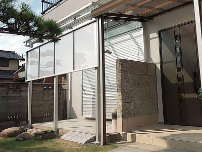 サンルームをテラスに変え、開放的な窓まわりになりました。シャッターは耐風タイプなので台風がきても安心してお過ごし頂けます。