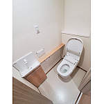 トイレも和便器をなくし、手洗いカウンター付きの広々とした空間になりました。スゴピカ素材でお掃除もラクラクです。電池で水を流せるので、いざという時も安心です。
