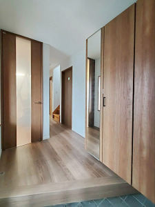 手狭になっていたLDKは間仕切で和室となっていた一角を洋室にやり替え、元々のLDKと一体化することで広々としたLDKとなりました。壁際にクローゼットを増設。和室の押入だった部分は拡張してウォークインクローゼットに変更しました。