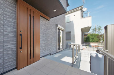 開口幅が広く簡単に開閉できる玄関引き戸を採用。車いすでもラクに出入りができます。