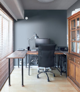 書斎もリゾートテイストに。床は以前のままで壁のクロスを変えて、雰囲気をガラリと変えました。