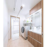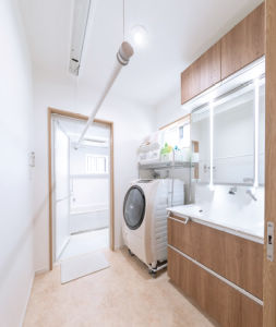 室内干しは、浴室乾燥機だけでなく洗面室の「ホシ姫サマ」を併用し、多くの衣類が乾かせるように。