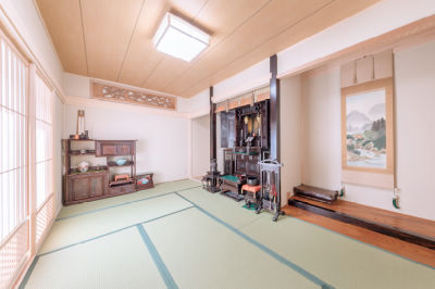代々受け継いできた床の間・床柱・欄間を再利用した和室。