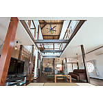 定年をきっかけにご実家を明るく広い空間にし、住みながらT様ご自身で手を加えられる部分を残してリフォーム。間仕切りを取り払い、2階の床も撤去して吹き抜けに。家の中心から陽光が降りそそぎ北側のキッチンも明るくなりました。筋交いは開放感生まれる鉄筋製に。DIYで自由な空間づくりを楽しめます。