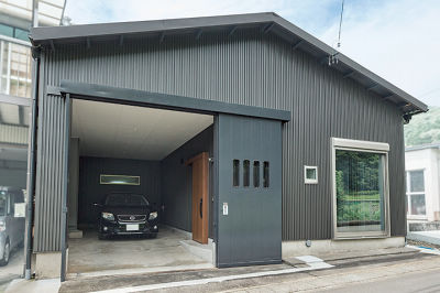 間仕切りの少ない空間を活かし、半分はインナーガレージに、残り半分を開放感あふれる1LDKへと一新。