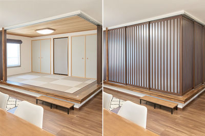 ダイニングキッチン横の二間続きの和室を活かし大空間LDKにしたO様。