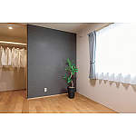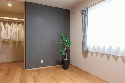寝室に設けた大容量のウォークインクロゼットはオープンタイプに。ブラックのクロスを採用し、メリハリのある空間になりました。