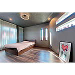 床材は、ご夫婦がひと目で気に入られた色柄を採用。すっきり見える天井埋込カーテンレールを取り入れ、スタイリッシュな寝室に。