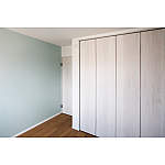 ホワイトオークの建具とアクセントウォール。色数をおさえたシンプルな子ども部屋。