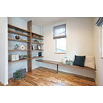リビングにつながるホビースペース。お子様と遊んだり、お客様がくつろいだりできるベンチを設置しました。