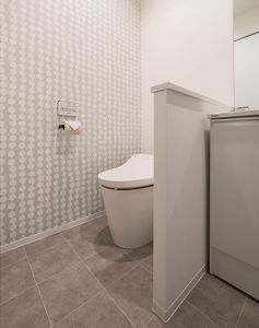 トイレ横には、目隠しと手すりを兼ねた袖壁を設けました。