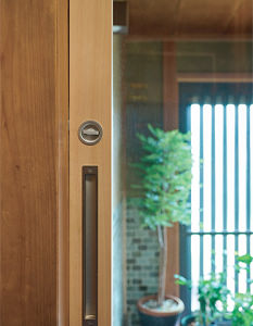 玄関土間とホールの間に、透明アクリル入りの3枚連動引き戸を設置して寒さ対策に。閉めていても視覚的抜け感が生まれます。