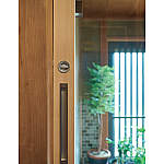 玄関土間とホールの間に、透明アクリル入りの3枚連動引き戸を設置して寒さ対策に。閉めていても視覚的抜け感が生まれます。