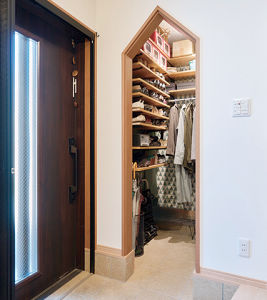 三世代分の靴・傘・上着をたっぷり収納できるシューズクローゼットを新設。いつもすっきりと片付いた玄関に。