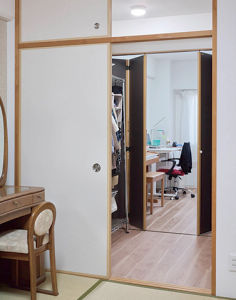 洋室と和室の間にある押し入れを改装してフリースペースに。将来は建具を外し、リビングまでつながるワンルームとして使えます。